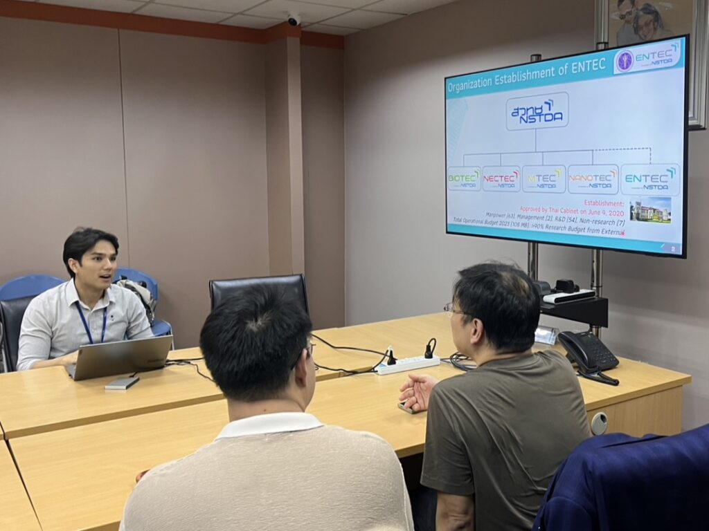 On March 27, 2026, the National Energy Technology Center (ENTEC), NSTDA, welcomed representatives from the private sector, including K.T.S Larger Goods Co., Ltd., a producer and distributor of biomass fuel (wood pellets), and Solid ASEAN Ltd., a developer of cooling technologies for solar panels, for a visit to ENTEC’s research facilities and laboratories