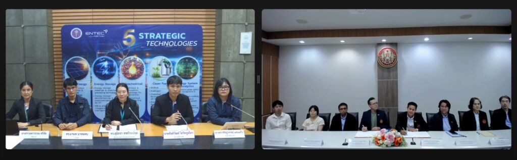 24 September 2025: Dr. Sumittra Charojrochkul, Executive Director of the National Energy Technology Center (ENTEC), National Science and Technology Development Agency (NSTDA), and Associate Professor Kamronwit Thipmanee, Executive Vice President of King Mongkut’s Institute of Technology Ladkrabang (KMITL), Chumphon Campus, signed a Memorandum of Understanding (MOU) to collaborate on the research and development under the  “Integrated Knowledge Initiative for Advancing Education, Research, and Innovation in Energy Technology”. The signing was conducted via video conference (Webex), with researchers and executives from both organizations present as witnesses.
