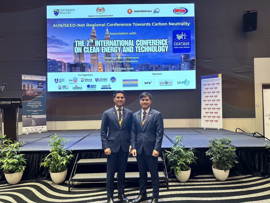 On October 1–2, 2025, researchers from the National Energy Technology Center (ENTEC), Dr. Tawan Champeecharoensuk and Dr. Arthit Champeecharoensuk, participated in the 7th International Conference on Clean Energy and Technology (CEAT 2025), held in Kuala Lumpur, Malaysia.
