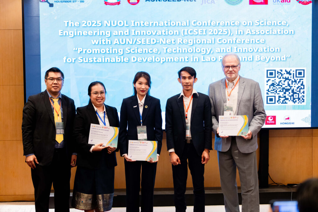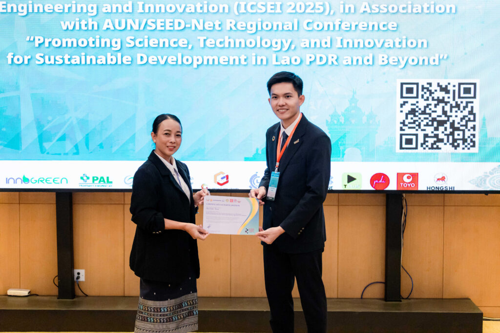 The conference was organized by the Faculty of Engineering, National University of Laos (NUOL) in collaboration with AUN/SEED-Net, the Japan International Cooperation Agency (JICA), Burapha University (Thailand), Climate Compatible Growth (UK), and the Ministry of Education and Sports (Lao PDR). The event aimed to serve as a platform for knowledge exchange in the fields of Science, Engineering, Innovation, and Sustainable Development, covering key topics such as Renewable Energy, Sustainable Infrastructure, Climate Change, Smart Technologies, Circular Economy, and STEM Education.