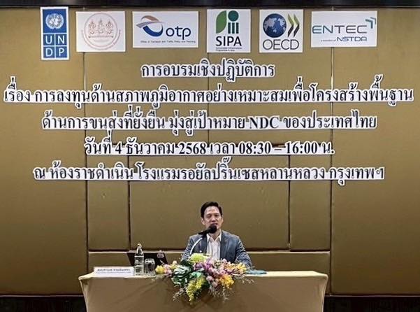 The National Energy Technology Center (ENTEC), NSTDA organized the workshop titled “Climate-Smart Investment for Sustainable Transport Infrastructure toward Thailand’s NDC Goals” in Bangkok. This event marked the final session of the training series under the Sustainable Infrastructure Programme in Asia (SIPA), following previous workshops held in Phuket, Nakhon Ratchasima, and Chiang Mai.