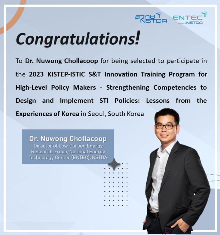 Congratulations to Dr. Nuwong Chollacoop on being selected to participate in KISTEP-ISTIC training program for high-level policy makers