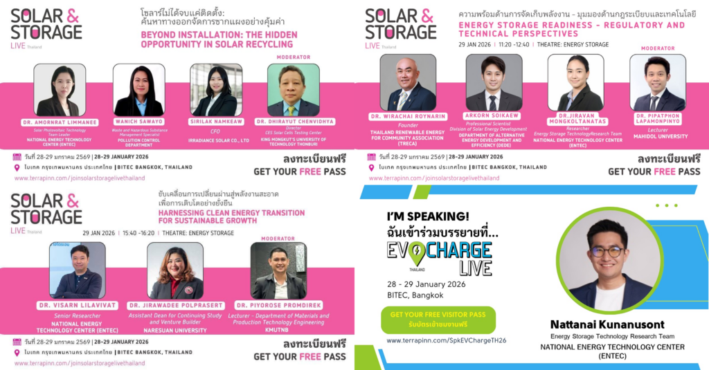 Bangkok, February 25, 2026 — The National Energy Technology Center (ENTEC), under the National Science and Technology Development Agency (NSTDA), in collaboration with the Thailand Energy Storage Technology Association (TESTA) and the ASEAN Secretariat, organized the “Capacity Building Workshop on Battery Energy Storage Systems (BESS) for Clean Energy Project Developers in ASEAN”. The event is […]
