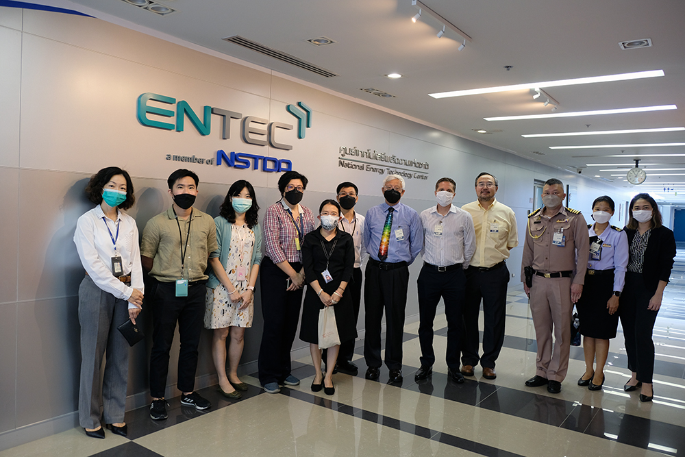 31 สิงหาคม 2565 อุทยานวิทยาศาสตร์ประเทศไทย จ.ปทุมธานี        ดร.สุมิตรา จรสโรจน์กุล ผู้อำนวยการศูนย์เทคโนโลยีพลังงานแห่งชาติ (ENTEC) สวทช. พร้อมด้วยทีมวิจัย ร่วมให้การต้อนรับ Dr. Chagaan Baatar, Science Director, Nanoscience & Quantum Information Science และคณะจาก Office of Naval Research Global (ONR), Tokyo สำนักงานโตเกียว ประเทศญี่ปุ่น ซึ่งเป็นหน่วยงานในการแสวงหาและส่งเสริมความร่วมมือทางวิทยาศาสตร์และเทคโนโลยี ในโอกาสเยี่ยมชมห้องปฏิบัติการด้านพลังงาน เพื่อประชาสัมพันธ์โครงการและหารือแนวทางการสร้างความร่วมมือในการวิจัยและพัฒนาที่สามารถดำเนินร่วมกันได้ในอนาคต