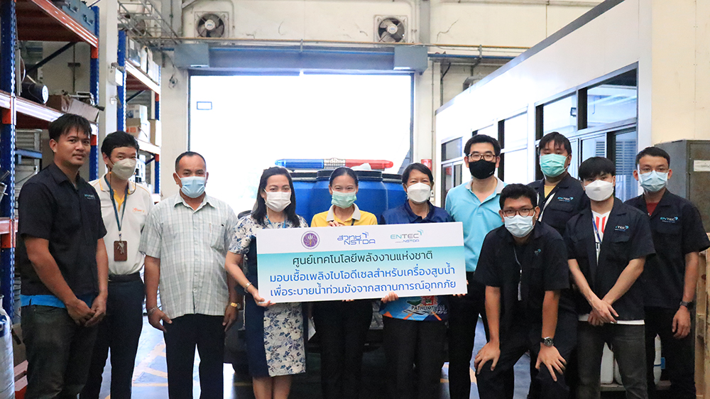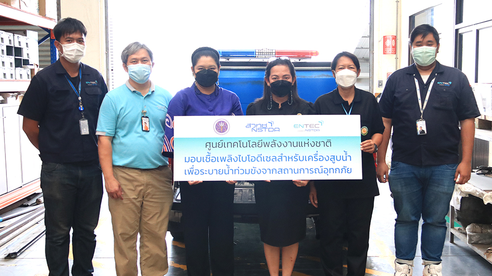 เอ็นเทค สวทช. มอบเชื้อเพลิงไบโอดีเซลสำหรับเครื่องสูบน้ำเพื่อระบายน้ำท่วมขังจากสถานการณ์อุทกภัย
