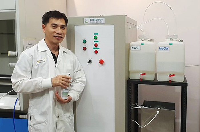 วันที่ 19-21 มกราคม 2565 จ.ศรีสะเกษ ศูนย์เทคโนโลยีพลังงานแห่งชาติ (ENTEC) สวทช. โดย ดร.สมศักดิ์ สุภสิทธิ์มงคล และทีมวิจัย (ดร.สุมิตรา จรสโรจน์กุล, ดร.ชัยยุทธ แซ่กัง, ดร.วิศาล ลีลาวิวัฒน์, ดร.ศุภกิจ วรศิลป์ชัย, นายตันติวัฒน์ โกวิทกูลไกร และ นางสาวกนกวรรณ ใหม่แก้ว) ส่งมอบและติดตั้ง ENcase เครื่องผลิตน้ำยาฆ่าเชื้ออิเล็กโทรไลต์ ผลงานวิจัยภายใต้โครงการวิจัย “การพัฒนาชุดผลิตน้ำยาฆ่าเชื้อที่มีสารประกอบคลอรีนเป็นส่วนประกอบด้วยวิธีทางไฟฟ้าเคมี สำหรับบำบัดขยะมูลฝอยติดเชื้อภายในสถานประกอบการสาธารณสุข” ให้แก่ โรงพยาบาลเมืองจันทร์ และ โรงพยาบาลส่งเสริมสุขภาพตำบลโนนคูณ จ.ศรีสะเกษ ENcase เป็นนวัตกรรมเครื่องผลิตน้ำยาฆ่าเชื้ออิเล็กโทรไลต์ จากสารละลายเกลือแกง หรือโซเดียมคลอไรด์ (NaCl) โดยอาศัยหลักการเกิดปฏิกิริยาไฟฟ้าเคมีภายในเครื่อง สำหรับผลิตน้ำยาฆ่าเชื้อ ENERclean ประกอบด้วย กรดไฮโปคลอรัส (Hypochlorous acid, HOCl) […]