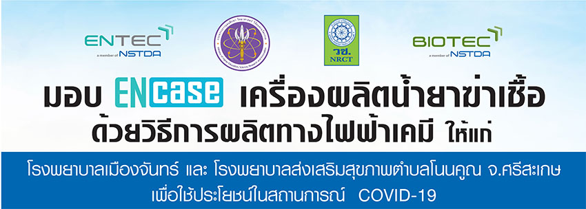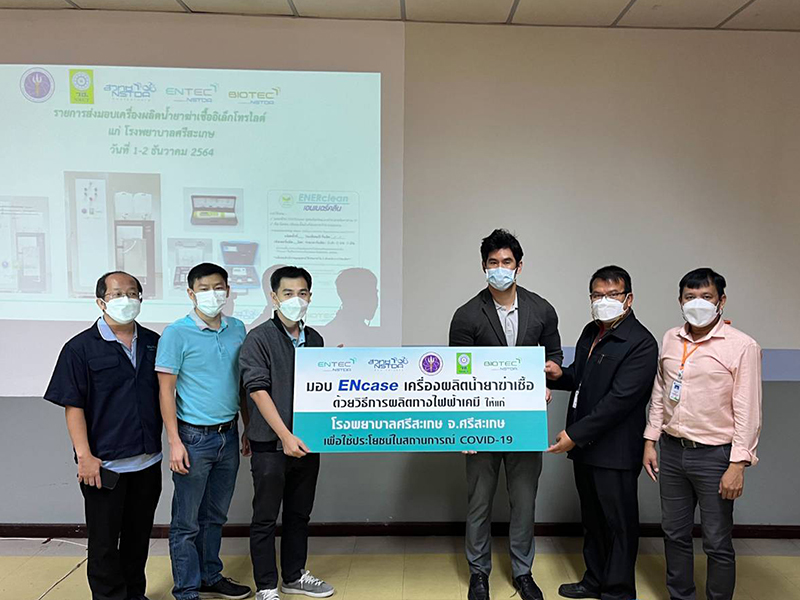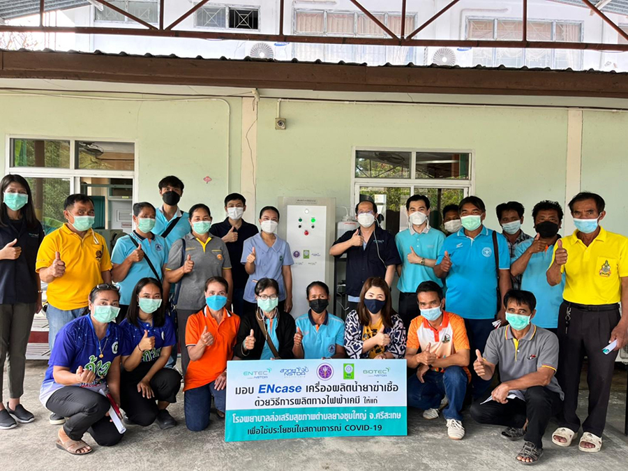 มอบ ENcase เครื่องผลิตน้ำยาฆ่าเชื้ออิเล็กโทรไลต์ ให้แก่ โรงพยาบาลเมืองจันทร์ และ โรงพยาบาลส่งเสริมสุขภาพตำบลโนนคูณ จ.ศรีสะเกษ เพื่อใช้ประโยชน์ในสถานการณ์ COVID-19