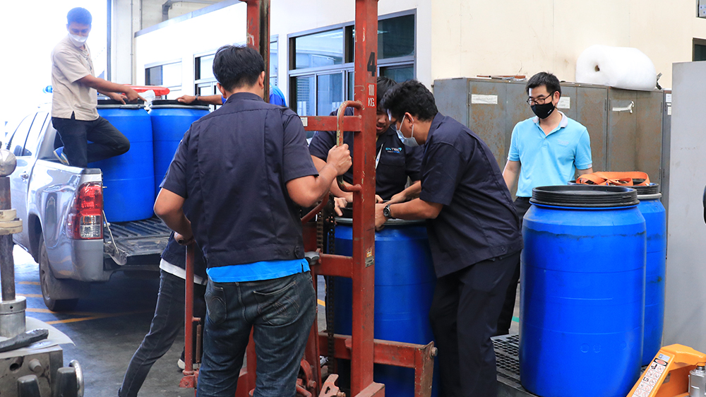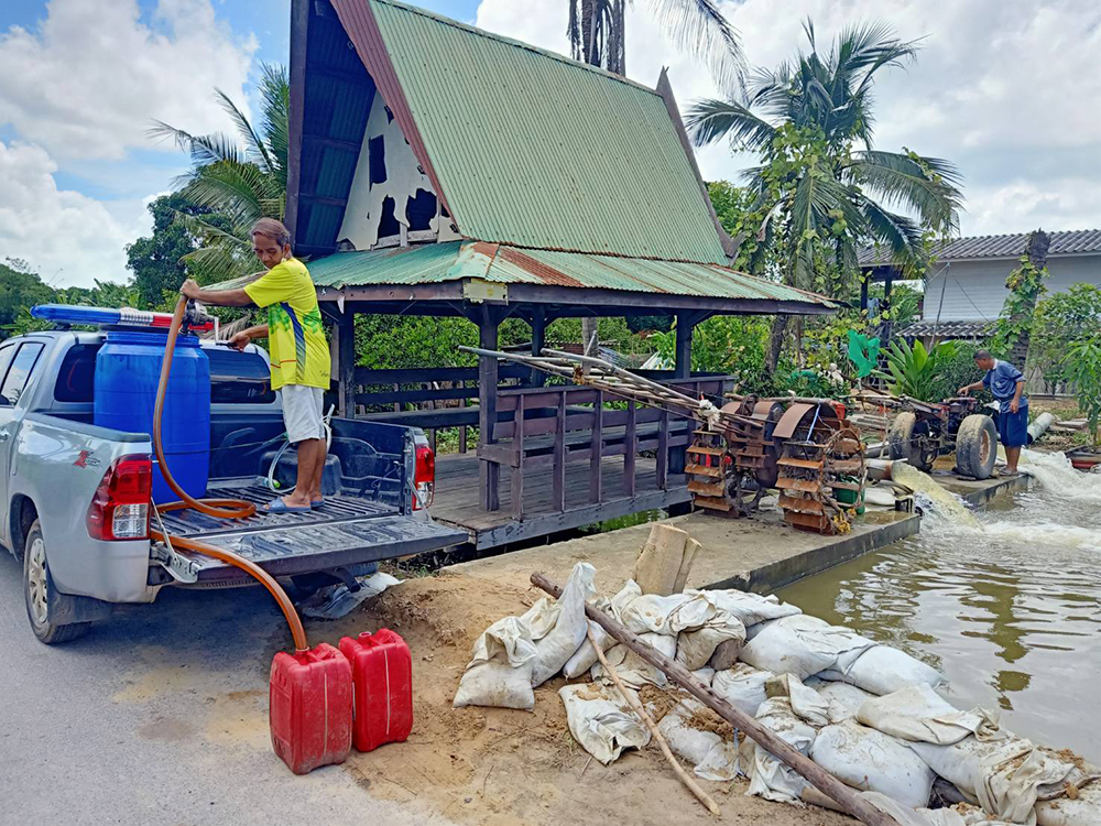 เอ็นเทค สวทช. เดินหน้าส่งมอบเชื้อเพลิงไบโอดีเซล B100 ช่วยเหลือพื้นที่ ต.หนองสามวัง จ.ปทุมธานี เร่งระบายน้ำท่วมขัง / News / By วันที่ 12 ตุลาคม 2565 ณ อุทยานวิทยาศาสตร์ประเทศไทย จ.ปทุมธานีศูนย์เทคโนโลยีพลังงานแห่งชาติ (ENTEC) สวทช. โดย ดร.พิมพา ลิ้มทองกุล ผู้อำนวยการ กลุ่มวิจัยนวัตกรรมพลังงาน และ ดร.นุวงศ์ ชลคุป ผู้อำนวยการ กลุ่มวิจัยพลังงานคาร์บอนต่ำ พร้อมทีมวิจัยประกอบด้วย ดร.วิศาล ลีลาวิวัฒน์ ดร.ภพพล เอียวพันธ์ นายภูมิอานันท์ นิยมนา นาย พิชญ์พงษ์ จันทา นายเขมรัฐ วิเธียน นายกัมปนาท ทับมณี เดินหน้าส่งมอบเชื้อเพลิงไบโอดีเซล B100 จากงานวิจัยอย่างต่อเนื่องอีกจำนวน 1,000 ลิตร รวมเป็นจำนวนสะสม 2,400 ลิตร ให้แก่ เทศบาลตำบลหนองสามวัง อำเภอหนองเสือ จังหวัดปทุมธานี เพื่อเร่งระบายน้ำท่วมขังจากสถานการณ์อุทกภัย 2565