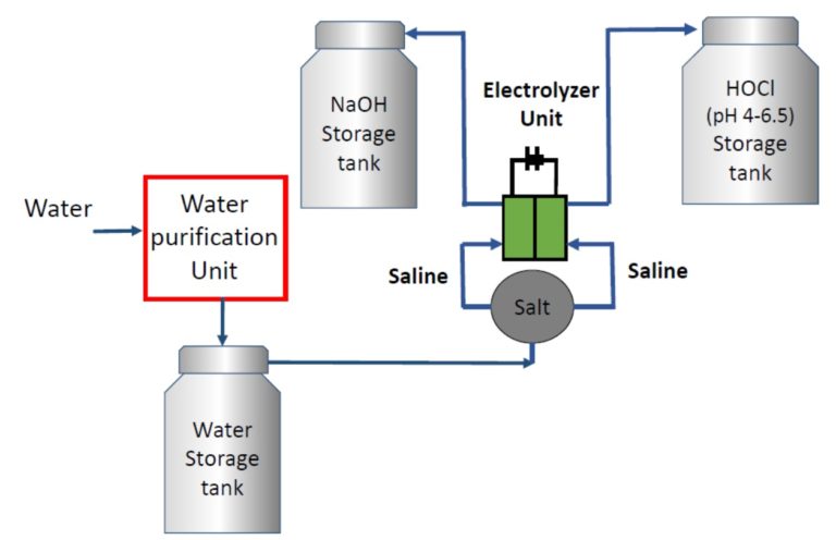 ภาพที่ 3 แผนภาพของระบบที่เป็นหัวใจสำคัญในการผลิตกรดไฮโปคลอรัส