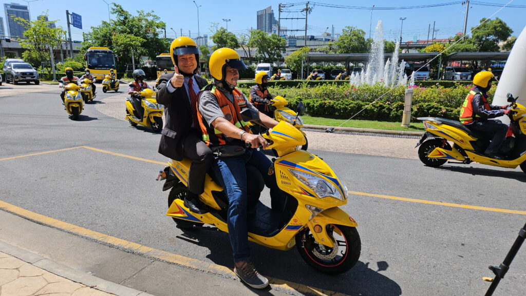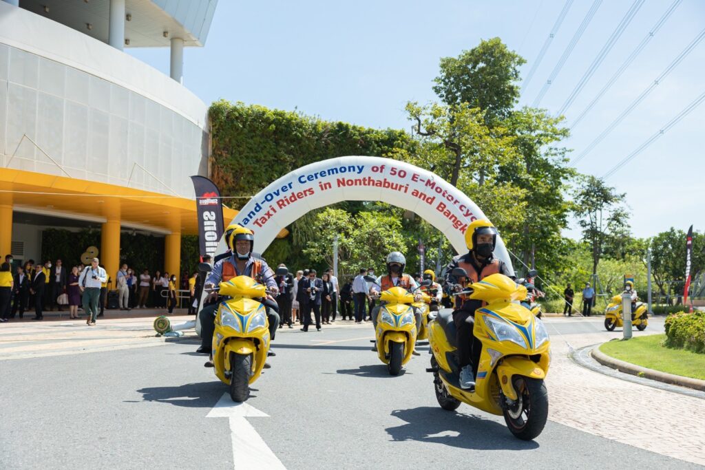 โดยมี คุณสุธี ทองแย้ม ผู้ว่าราชการจังหวัดนนทบุรี และคุณเฉลิมพล โชตินุชิต รองปลัดกรงุเทพมหานคร เป็นตัวแทนวินมอเตอร์ไซค์รับจ้างสาธารณะในพิธีการการรับมอบ