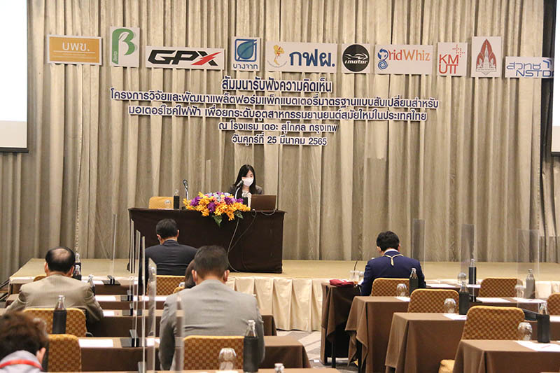 ศูนย์เทคโนโลยีพลังงานแห่งชาติ (ENTEC) สวทช. ร่วมกับ มหาวิทยาลัยเทคโนโลยีพระจอมเกล้าธนบุรี, มหาวิทยาลัยขอนแก่น, บริษัท จีอี มอเตอร์ (ประเทศไทย), บริษัท บางจาก คอร์ปอเรชั่น จำกัด, การไฟฟ้าฝ่ายผลิตแห่งประเทศไทย, บริษัท ไอ-มอเตอร์ แมนูแฟคเจอริ่ง จำกัด และ บริษัท กริชวิช (ประเทศไทย) จำกัด จัดสัมมนารับฟังความคิดเห็นการวิจัยและพัฒนาแพลตฟอร์มแพ็กแบตเตอรี่มาตรฐานแบบสับเปลี่ยนสำหรับมอเตอร์ไซค์ไฟฟ้าเพื่อยกระดับอุตสาหกรรมยานยนต์สมัยใหม่ในประเทศไทย ภายใต้การสนับสนุนทุนวิจัยจากหน่วยบริหารและจัดการทุนด้านการเพิ่มความสามารถในการแข่งขันของประเทศ (บพข.)