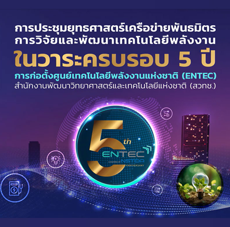 ENTEC ศูนย์เทคโนโลยีพลังงานแห่งชาติ ฉลองครบรอบ 5 ปีแห่งความสำเร็จจากการวิจัยและพัฒนาเทคโนโลยีพลังงานสะอาด เช่น น้ำมันหม้อแปลง EnPAT, ไบโอดีเซลเกรดพรีเมียม, แพลตฟอร์ม Solar Sure และโครงการแบตเตอรี่เปลี่ยนได้ BattSwap สนับสนุนเป้าหมาย Carbon Neutrality ปี 2593 และ Net Zero ปี 2608 พร้อมเดินหน้าสู่ศูนย์กลางนวัตกรรมพลังงานของภูมิภาค