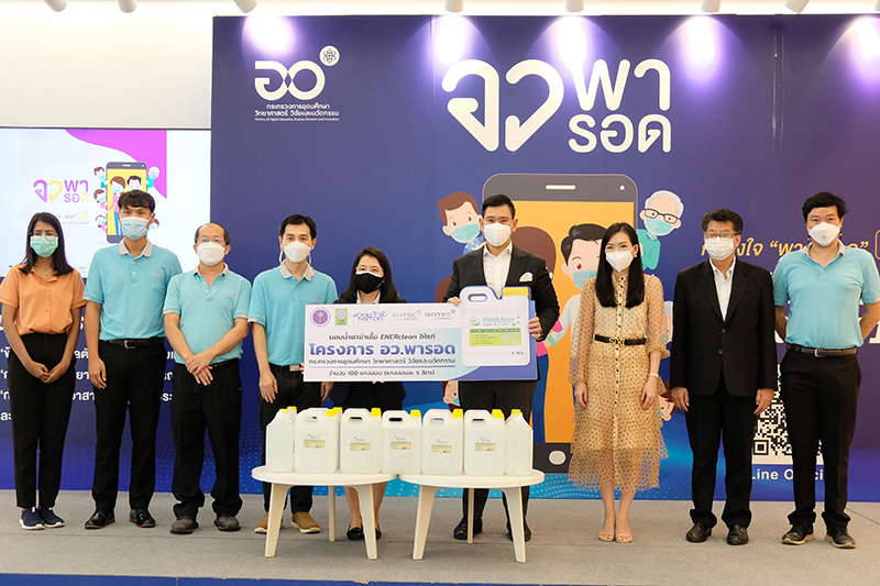 On November 3, 2021 at the Ministry of Higher Education, Science, Research and Innovation, the National Energy Technology Center (ENTEC) had delivered 100 sets of “ENERclean” to support the “MHESImadeussurvive” project to cope with COVID-19. The event was presided over by Asst. Prof. Dr. Duangrit Benjathikul Chairungrueng, Secretary of the Ministry of Higher Education, Science, Research and Innovation, and Dr. Sumittra Chairojrochkul, Director of Energy Innovation Research Group of ENTEC, together with Dr. Somsak Supasitmongkol, Researcher, and his research team.