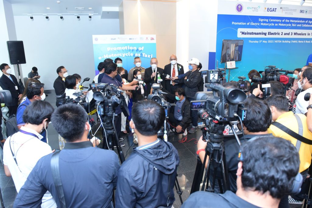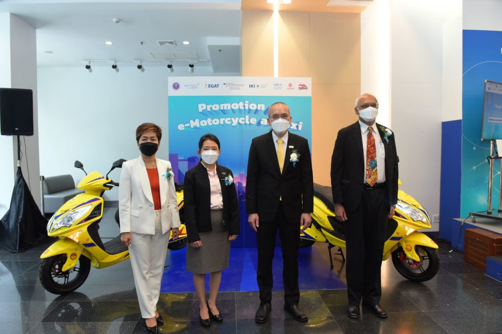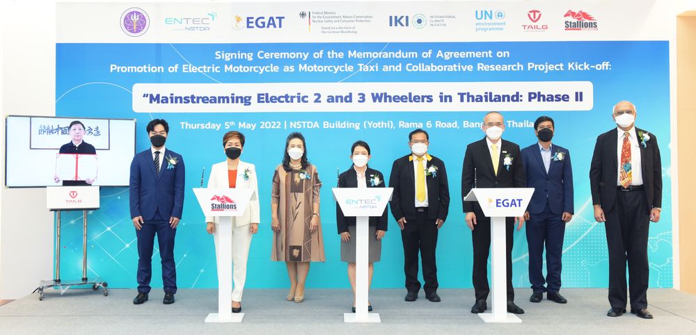 On 5 May 2022, National Science and Technology Development Agency (NSTDA) by National Energy Technology Center (ENTEC) has organized Signing Ceremony of Memorandum of Agreement on “Promotion of Electric Motorcycle as Motorcycle Taxi and Collaborative Research Project Kick-off” attended by Dr. Sumittra Charojrochkul, Executive Director of ENTEC, Mr. Suttipong Chalermkiat, Assistant Governor (Sustainability Management) of Electricity Generating Authority of Thailand (EGAT), Mrs. Areerat Sriprathai, Chief Executive Officer of The Stallions Co., Ltd. and Mr. Li Yao, President of Dongguan Tailing Electric Vehicle Co., Ltd. (TAILG) under witness by Dr. Mushtaq Memon, Regional Coordinator for Chemicals and Pollution Action and Mr. Bert Fabian from United Nations Environment Programme (UNEP)