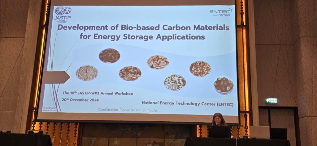 Dr. Sumittra Charojrochkul, Executive Director of the National Energy Technology Center (ENTEC), NSTDA, along with Dr. Pimpa Limthongkul, Director of the Energy Innovation Research Group, and the research team, attended the 10th JASTIP-WP2 Annual Workshop organized by the Japan-ASEAN Science, Technology, and Innovation Platform (JASTIP) Work Package 2 (WP2) in collaboration with research institutions and universities from Thailand and Japan under the JASTIP initiative. The workshop aimed to summarize project outcomes and discuss collaboration on research, technology, and innovation development.