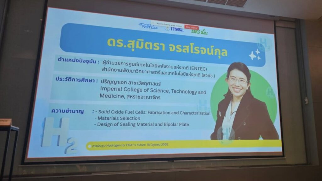 Dr. Sumittra Charojrochkul, Executive Director of the National Energy Technology Center (ENTEC) under the National Science and Technology Development Agency (NSTDA), was honored to be invited by Dr. Wipoo Piwat, Deputy Governor-Generation at the Electricity Generating Authority of Thailand (EGAT), to serve as an expert guest speaker.