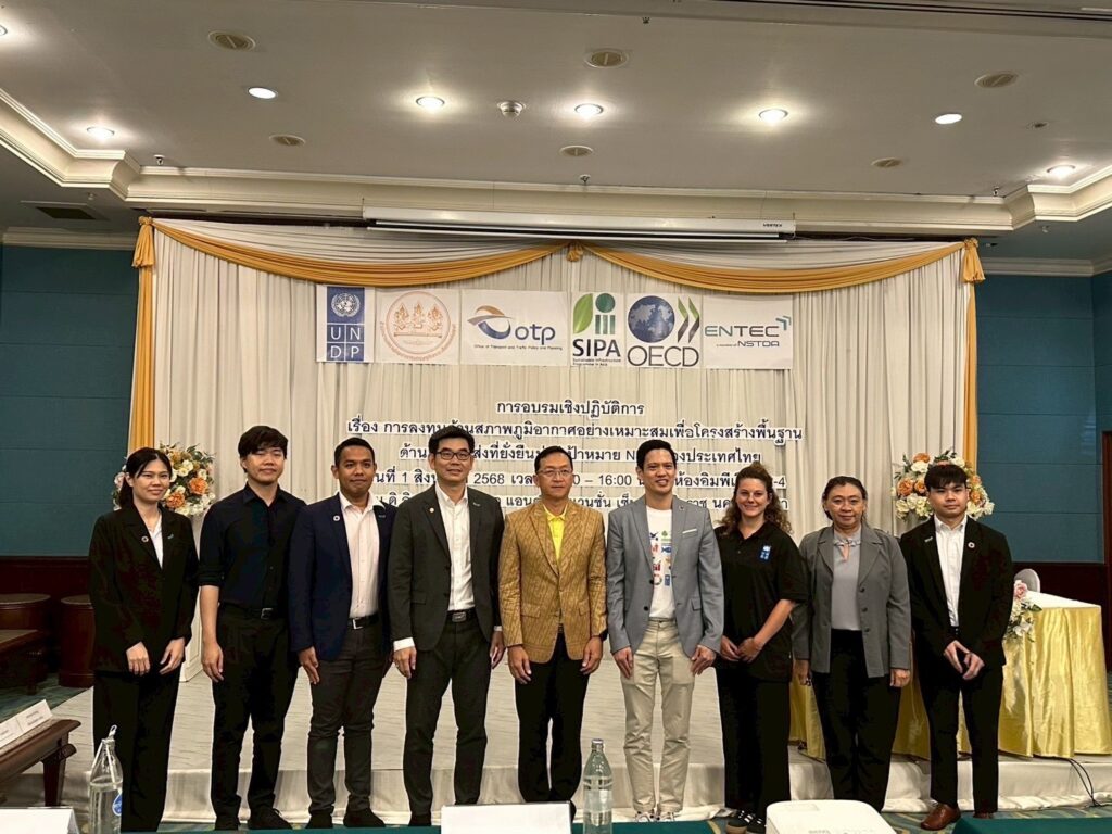 The National Energy Technology Center (ENTEC), under the National Science and Technology Development Agency (NSTDA), organized a conference and workshop titled “Climate-Responsive Investment for Sustainable Transport Infrastructure Toward Thailand’s NDC Goals” under the Sustainable Infrastructure in Asia (SIPA) initiative. ENTEC was commissioned to organize this event by the United Nations Development Programme (UNDP) Thailand, in collaboration with the Office of the National Economic and Social Development Council (NESDC) and the Office of Transport and Traffic Policy and Planning (OTP). The objective was to enhance knowledge, understanding, and capacity of local-agencies in designing climate-resilient investment projects for sustainable transport infrastructure, with practical applications.