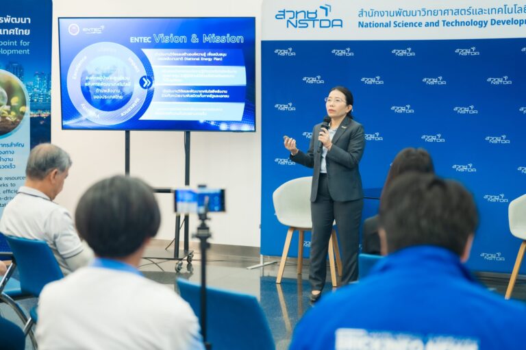 On May 14, 2025, the National Energy Technology Center (ENTEC), under the National Science and Technology Development Agency (NSTDA), hosted the “NSTDA x Press Interviews” event at the Yothi Research Building, Bangkok. Dr. Sumittra Charojrochkul, ENTEC Executive Director, shared the center’s vision and achievements in research and innovation aimed at supporting Thailand’s transition toward a sustainable energy ecosystem.