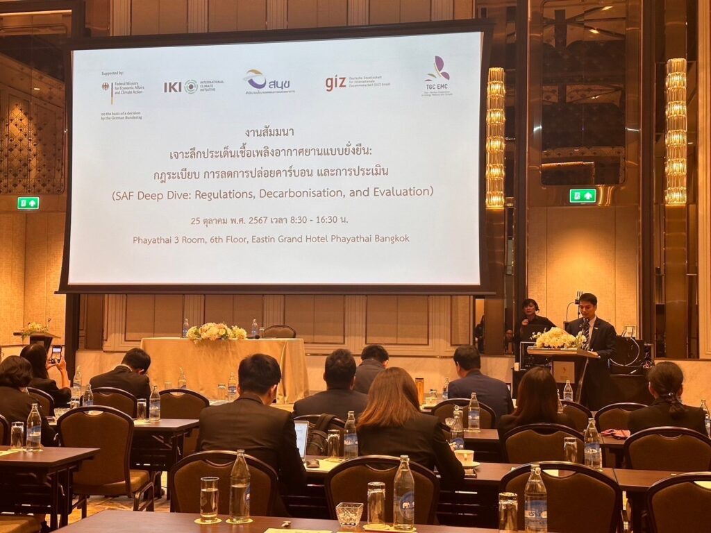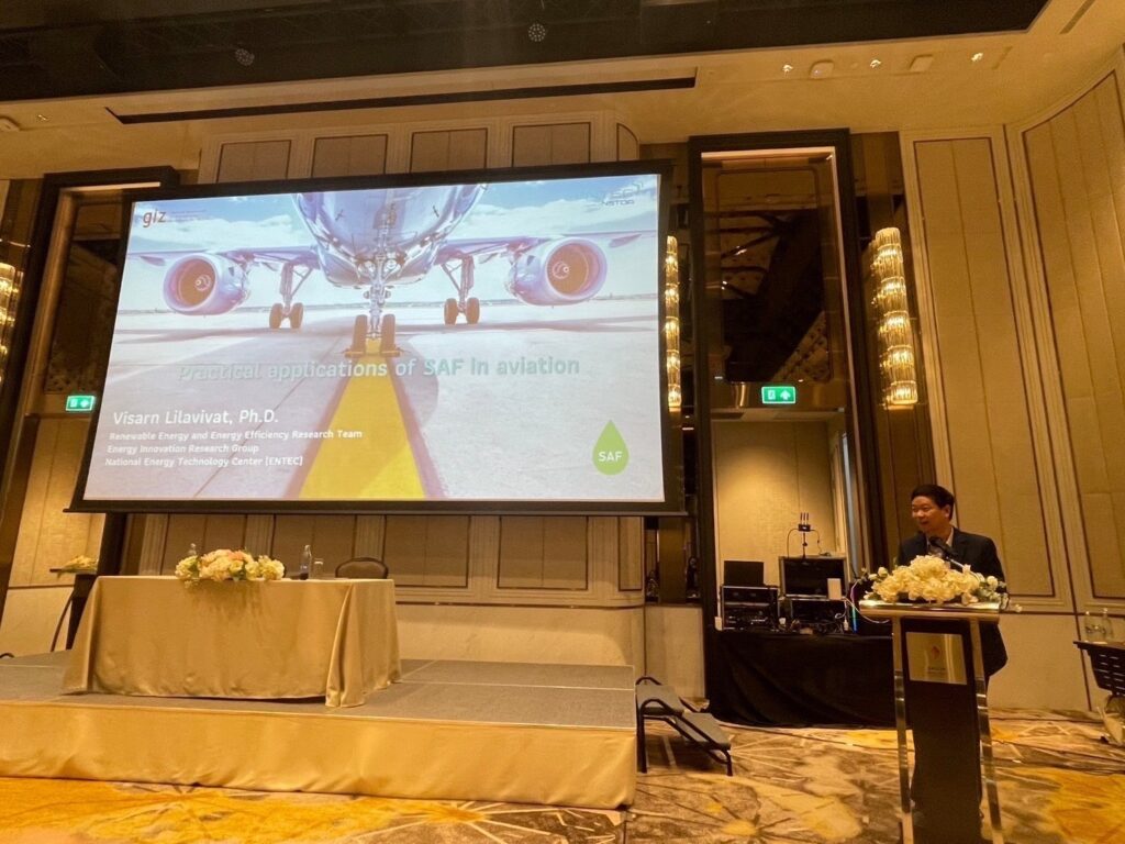 On October 25, 2024, the National Energy Technology Center (ENTEC), led by Dr. Nuwong Chollacoop, Director of Low Carbon Energy Research Group, along with the working team consisting of Dr. Visarn Lilavivat and Dr. Tawan Champeecharoensuk, participated in seminar on the Sustainable Aviation Fuel (SAF) Deep Dive: Regulations, Decarbonization, and Evaluation at Phayathai 3 Room, 6th Floor, Eastin Grand Hotel Phayathai, Bangkok.