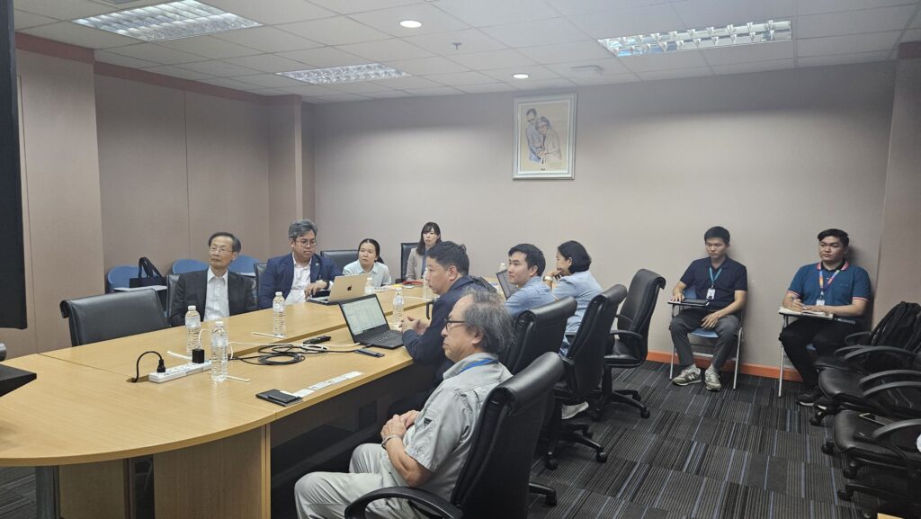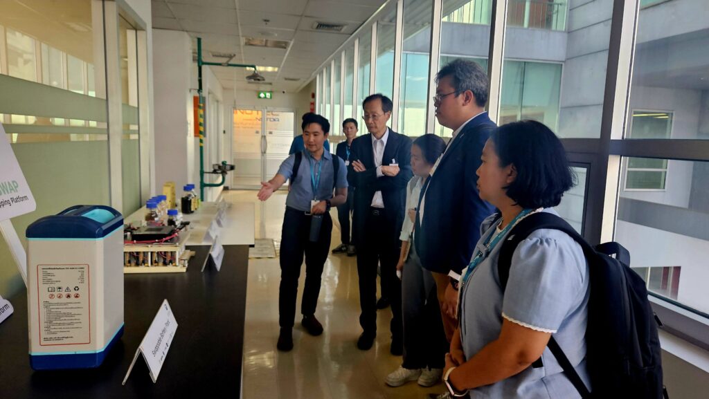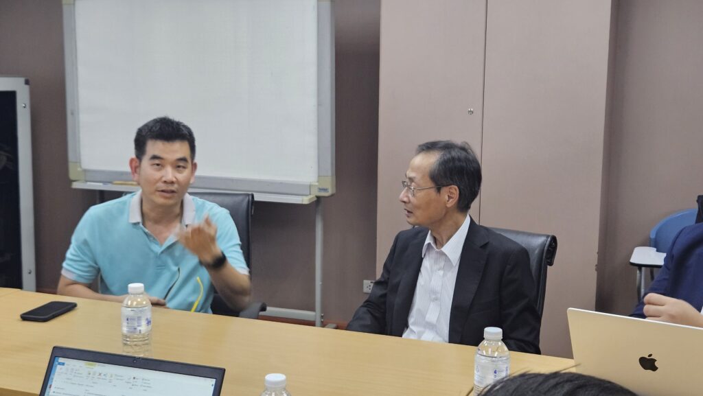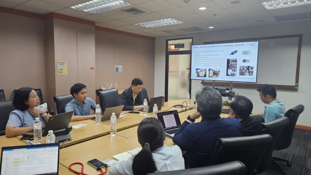The distinguished guests were welcomed by ENTEC’s executives, including Executive Director Dr. Sumitra Charojrochkul and Dr. Nuwong Chollacoop, Director of the Low Carbon Energy Research Group. During the meeting, Dr. Visarn Lilavivat presented an overview of NSTDA and ENTEC, while Dr. Mahunnop Fakkao, Head of the Automotive Engineering Program, introduced the “Green Industrial Engineering Management” curriculum and invited ENTEC researchers to join as guest lecturers.