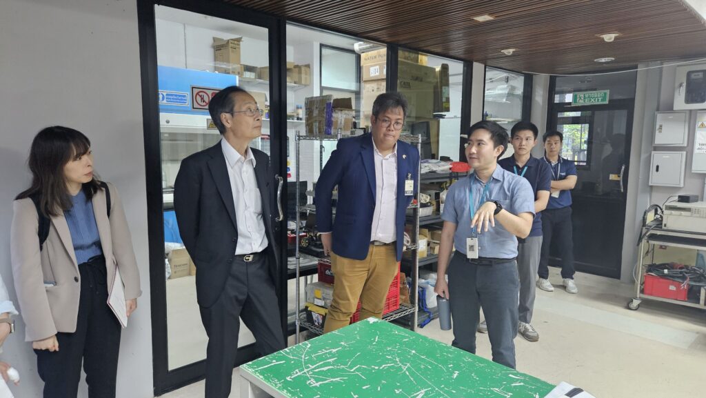 The visit concluded with a tour of ENTEC’s laboratories, led by Dr. Visarn, Dr. Nattanai Kunanusont, and Dr. Priew Eiamlamai from the Energy Storage Technology Research Team, who guided the guests through the Renewable Energy and Energy Efficiency Laboratory (RENT) and the Energy Storage Technology Testing Laboratory (ESTT). This discussion is expected to lead to future collaboration in academic and research partnerships between the two parties.