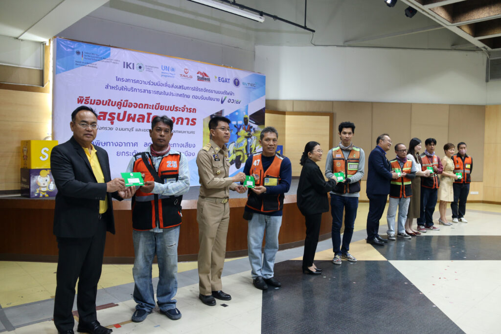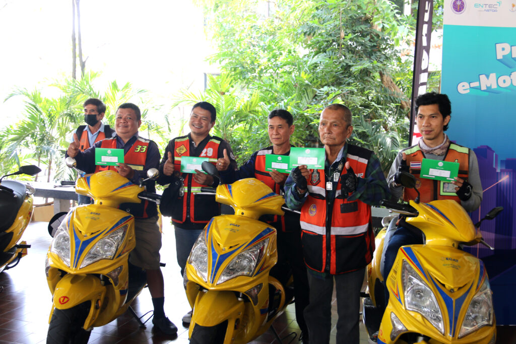 เมื่อวันที่ 18 มีนาคม พ.ศ.2567 ณ ห้องประชุมเฟื่องฟ้า 1 การไฟฟ้าฝ่ายผลิตแห่งประเทศไทย (กฟผ.) สำนักงานใหญ่ กรุงเทพมหานคร ศูนย์เทคโนโลยีพลังงานแห่งชาติ (ENTEC) นำโดย ดร.สุมิตรา จรสโรจน์กุล ผู้อำนวยการฯ พร้อมด้วย ดร.ลิลี่ เอื้อวิไลจิตร ผู้ช่วยผู้อำนวยการฯ ดร.นุวงศ์ ชลคุป ผอ.กลุ่มวิจัยพลังงานคาร์บอนต่ำ ดร.พิมพา ลิ้มทองกุล ผอ.กลุ่มวิจัยนวัตกรรมพลังงาน และคณะนักวิจัย ร่วมกับผู้เเทนจากหน่วยงานที่เกี่ยวข้องจัดงาน “พิธีมอบใบคู่มือจดทะเบียนประจำรถฯ และสรุปผลโครงการ” ในพื้นที่อำเภอบางกรวย จังหวัดนนทบุรี และเขตบางพลัด กรุงเทพมหานคร ภายใต้โครงการความร่วมมือเพื่อส่งเสริมการใช้รถจักรยานยนต์ไฟฟ้าสำหรับให้บริการสาธารณะในประเทศไทย