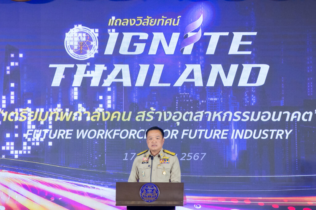 งานแถลงวิสัยทัศน์นี้ นายเศรษฐา ทวีสิน นายกรัฐมนตรี มอบหมาย นายอนุทิน ชาญวีรกูล รองนายกรัฐมนตรีและรัฐมนตรีว่าการกระทรวงมหาดไทย เป็นประธานเปิดงาน ภายในงาน น.ส.ศุภมาส อิศรภักดี รัฐมนตรีว่าการกระทรวงการอุดมศึกษา วิทยาศาสตร์ วิจัย และนวัตกรรม (อว.) กล่าวแสดงวิสัยทัศน์ “เตรียมทัพกำลังคน สร้างอุตสาหกรรมอนาคต” สนับสนุนนโยบาย Ignite Thailand ทั้งแปดด้านของนายกรัฐมนตรี โดยร่วมกับภาครัฐ ภาคเอกชน สถาบันอุดมศึกษา และสถาบันวิจัย ทั้งในและต่างประเทศ วางแผนสร้างและพัฒนากำลังคนทักษะสูงในทุกระดับ (บัณฑิต นักวิจัย และบุคลากรในภาคอุตสาหกรรม) มีเป้าหมายผลิตกำลังคนด้าน Semiconductor & Advanced Electronics จำนวน 80,000 คน ด้าน EV จำนวน 150,000 คน และด้าน AI จำนวน 50,000 คนภายใน 5 ปี ผ่านกลไก Initiative Projects ประกอบด้วย โครงการผลิตกำลังคนระยะสั้นจำนวน 3 โครงการ โครงการผลิตกำลังคนระยะกลาง-ยาวจำนวน 3 โครงการ การจัด Semiconductor Training Center จำนวน 4 แห่ง และการจัด Training Center มากกว่า 30 แห่ง เพื่อผลิตกำลังคนทักษะขั้นสูงรองรับอุตสาหกรรมอนาคต ขับเคลื่อนเศรษฐกิจประเทศไทยสู่อนาคตที่ยั่งยืน
