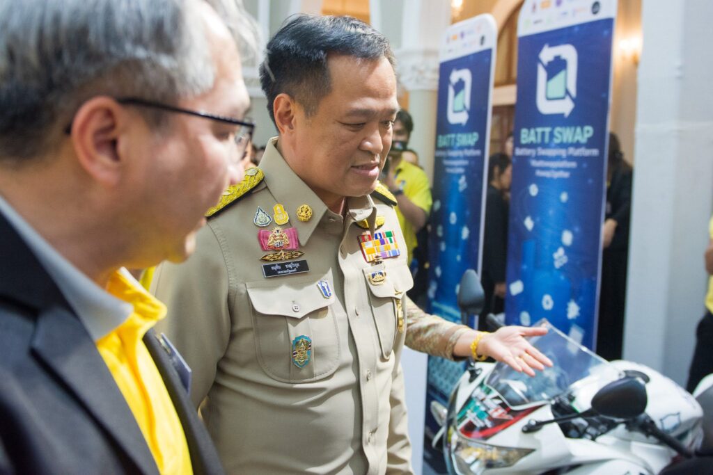 นอกจากนี้ยังมีการจัดแสดงนิทรรศการตัวอย่างผลงานของหน่วยงานภายใต้การกำกับของ อว. ที่สอดคล้องสนับสนุนวิสัยทัศน์นี้ ซึ่งผลงาน “Battery Swapping Platform” หนึ่งในผลงานสำคัญของศูนย์เทคโนโลยีพลังงานแห่งชาติร่วมกับพันธมิตรได้รับการจัดแสดงด้วย