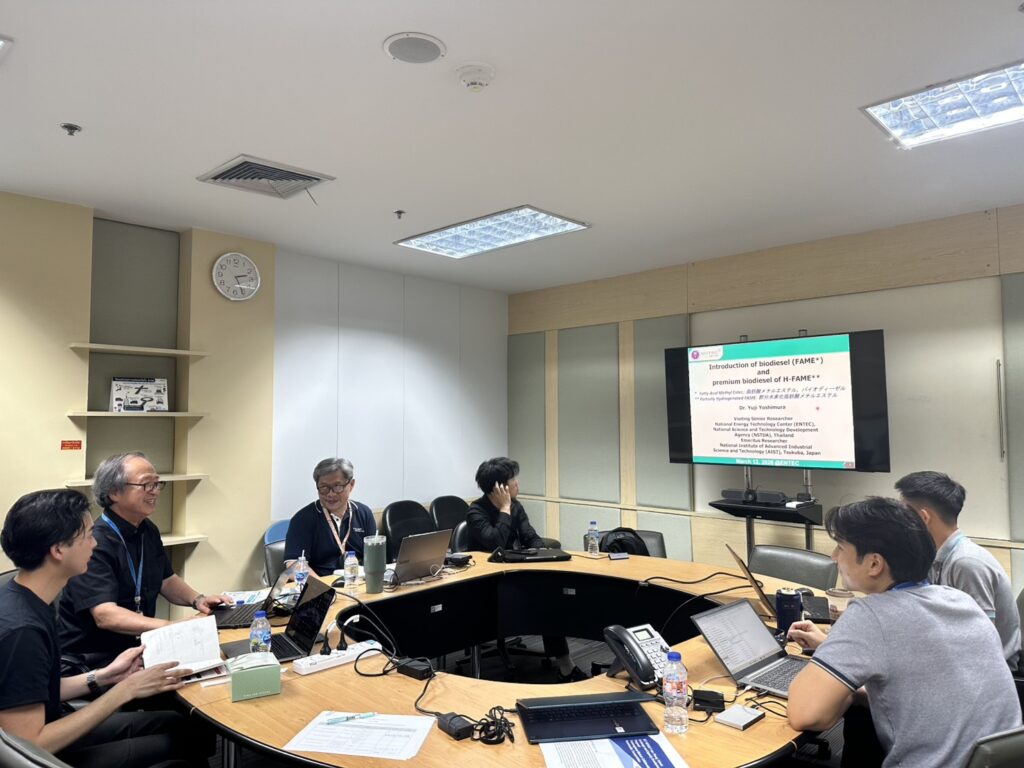 As part of the program, Dr. Yuji Yoshimura, Visiting Senior Researcher, presented research on the applications of biodiesel (FAME) and premium biodiesel (H-FAME), Mr. Nayos Sirisoot shared research findings on the assessment of biogas reforming process for hydrogen production, while Mr. Pham Dinh Thao presented research on hydrogen fuel cell technology.