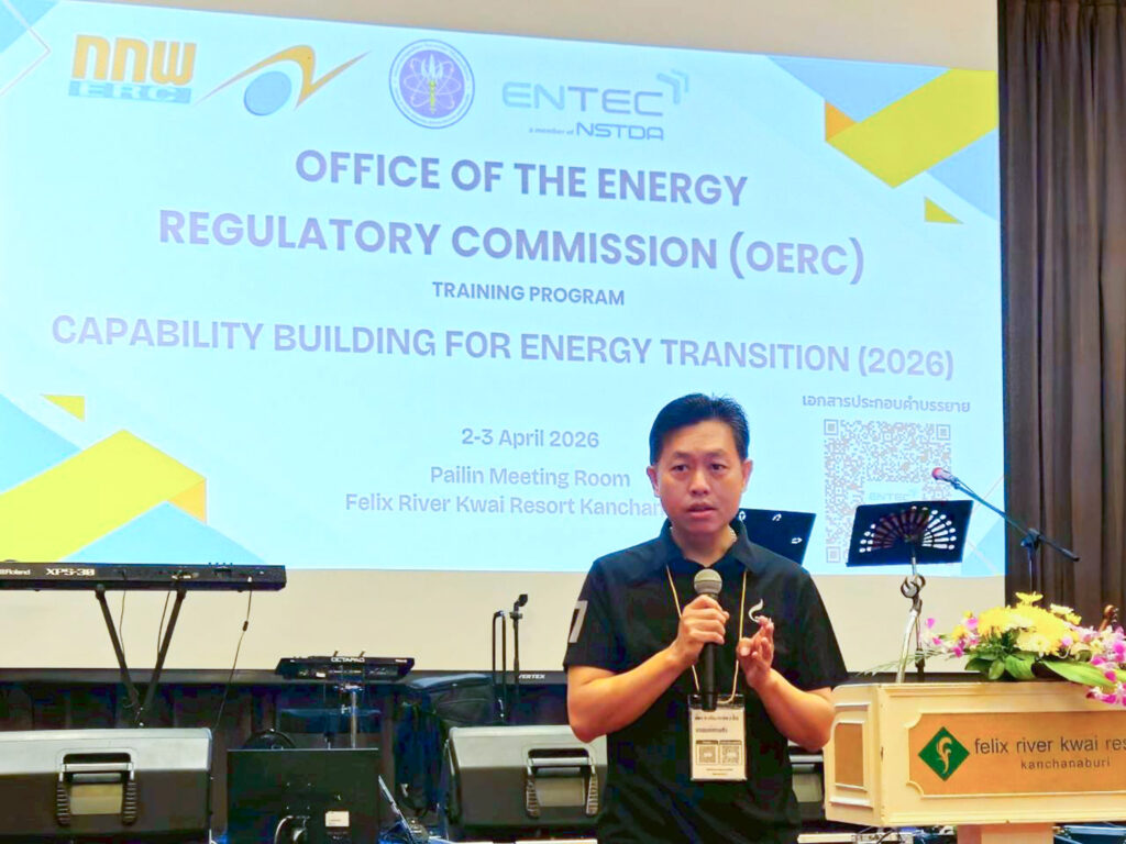 The National Energy Technology Center (ENTEC), under the National Science and Technology Development Agency (NSTDA), in collaboration with the Energy Regulatory Commission (ERC), hosted the 4th-year closing seminar of the “Capability Building for Energy Transition 2026” program. The initiative is designed to strengthen the capacity of energy regulatory personnel to effectively support Thailand’s transition toward future energy systems and its national Net Zero goals. The seminar was honored by welcome remarks from Dr. Sumittra Charojrochkul, Executive Director of ENTEC, and an opening address delivered by Dr. Prasit Siritiprussamee, Deputy Secretary General of the ERC.