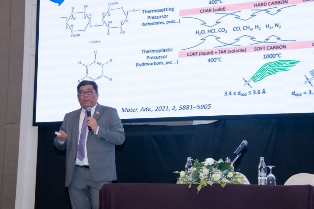 The innovative research transforms discarded bamboo chopsticks into high-performance anode materials for sodium-ion batteries. This groundbreaking approach not only addresses waste management challenges but also produces carbon composites with exceptional properties, including extended cycle life and remarkably high charge/discharge efficiency. This eco-friendly advancement in battery material development marks a significant step forward in energy storage technologies, aligning with Thailand’s ongoing energy transition goals. On this occasion, Dr. Pattravadee Ploykitikoon, Acting Assistant Director of NSTDA, extended her congratulations to the ENTEC research team. In addition, during the 2025 Synchrotron Light User Meeting, Dr. Chakrit was invited as a a distinguished keynote speaker for the session titled “Inspiration Talk: Behind the Success of the SLRI Award-Winning Research in Physical Sciences,” where he shared his valuable insights, inspiration, and experiences from the research journey with attendees.