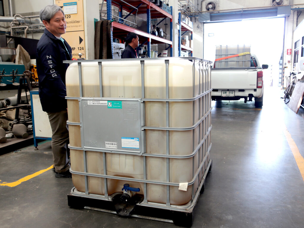 The biodiesel delivery was led by Dr. Sumittra Charojrochkul, Executive Director of ENTEC, together with Dr. Peerawat Saisirirat, Team Leader of the Renewable Energy and Energy Efficiency Research Team, Low Carbon Energy Reserch Group, Dr. Visarn Lilavivat, Researcher and members of the research team. The biodiesel was handed over to Mr. Chaiwat Khamman, Deputy Chief Executive of the Chee Nam Rai Subdistrict Administrative Organization, In Buri District, Sing Buri Province.