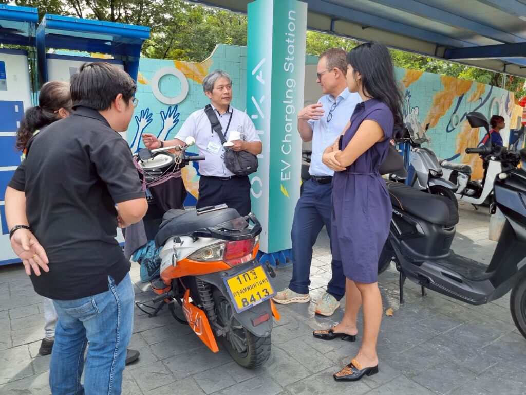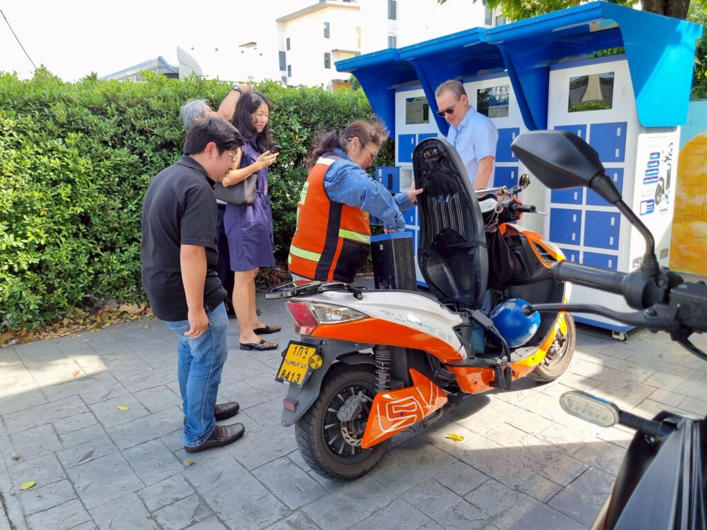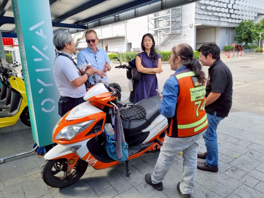 ในการลงพื้นที่ครั้งนี้ ผู้แทนจากบริษัท เดอะ สตาเลียน จำกัด และบริษัท โอยิกะ (ไทยแลนด์) จำกัด ซึ่งเป็นเครือข่ายผู้ร่วมดำเนินโครงการวิจัย พร้อมด้วยตัวแทนผู้ขับขี่รถจักรยานยนต์ไฟฟ้ารับจ้างได้ให้ข้อมูลเกี่ยวกับการใช้งานรถจักรยานยนต์ไฟฟ้าเป็นรถรับจ้างสาธารณะ รูปแบบการสมัครสมาชิก ค่าใช้จ่ายในการรับบริการสับเปลี่ยนแบตเตอรี่ ประสิทธภาพของรถจักรยานยนต์ไฟฟ้าในปัจจุบัน และแนวทางการพัฒนาโมเดลใหม่ในอนาคต รวมถึงข้อดีด้านรายได้ที่เพิ่มขึ้นเมื่อเปรียบเทียบกับการใช้รถจักรยานยนต์เครื่องยนต์สันดาป