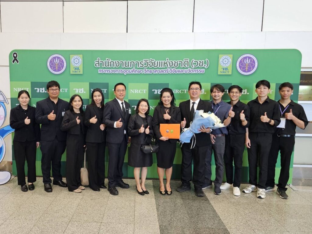 ในโอกาสนี้ ดร.สมบุญ สหสิทธิวัฒน์ รองผู้อำนวยการสำนักงานพัฒนาวิทยาศาสตร์และเทคโนโลยีแห่งชาติ (สวทช.) และดร.สุมิตรา จรสโรจน์กุล ผู้อำนวยการศูนย์เทคโนโลยีพลังงานแห่งชาติ (ENTEC) ร่วมแสดงความยินดีกับนักวิจัยที่ได้รับรางวัลอันทรงเกียรติจากสำนักงานการวิจัยแห่งชาติ (วช.) ในงานวันนักประดิษฐ์ ประจำปี 2569 สะท้อนความสำเร็จด้านงานวิจัยและนวัตกรรมพลังงานของประเทศ