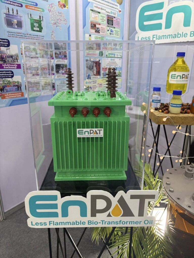 “EnPAT น้ำมันหม้อแปลงไฟฟ้าปลอดภัยจากปาล์มน้ำมันไทย (Safe Transformer Oil from Thai Oil Palm)” พัฒนาโดยที่วิจัย ENTEC นำโดย ดร.บุญญาวัณย์ อยู่สุข หัวหน้าทีมวิจัยเทคโนโลยีเชื้อเพลิงสะอาดและเคมีขั้นสูง กลุ่มวิจัยพลังงานคาร์บอนต่ำ ร่วมกับทีมนักวิจัย ENTEC และศูนย์เทคโนโลยีโลหะและวัสดุแห่งชาติ (MTEC)