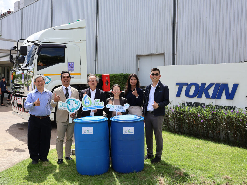 วันที่ 6 ตุลาคม 2568 ศูนย์เทคโนโลยีพลังงานแห่งชาติ (ENTEC) สำนักงานพัฒนาวิทยาศาสตร์และเทคโนโลยีแห่งชาติ (สวทช.) นำโดย ดร.สุมิตรา จรสโรจน์กุล ผู้อำนวยการศูนย์เทคโนโลยีพลังงานแห่งชาติ (ENTEC) ดร.นุวงศ์ ชลคุป ผู้อำนวยการกลุ่มวิจัยพลังงานคาร์บอนต่ำ ดร.พีรวัฒน์ สายสิริรัตน์ หัวหน้าทีมวิจัยพลังงานทดแทนและประสิทธิภาพพลังงาน และทีมวิจัย เดินหน้าขับเคลื่อนการพัฒนาพลังงานสะอาดและการลดการปล่อยก๊าซเรือนกระจกในภาคอุตสาหกรรมไทย โดยร่วมสนับสนุน บริษัท ซัน-อัพ รีไซคลิง จำกัด และพันธมิตร บริษัท โทคิน อิเล็กทรอนิกส์ (ประเทศไทย) จำกัด ในการนำน้ำมันไบโอดีเซลเกรดพิเศษ H-FAME (Hydrotreated Fatty Acid Methyl Ester) ไปใช้จริงในกระบวนการขนส่ง เพื่อมุ่งสู่เป้าหมายการลดการปล่อยก๊าซเรือนกระจก และเสริมสร้างความยั่งยืนทางสิ่งแวดล้อมและพลังงานให้กับประเทศ